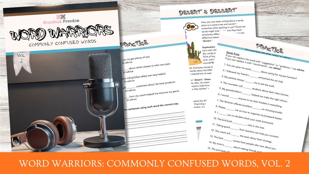 Throughout Word Warriors: Volume 2, Olivia will lead engaging lessons on sets of commonly confused words. With clear explanations and helpful examples, your student will grasp the difference between tricky words like "sell" and "sale" and many more!